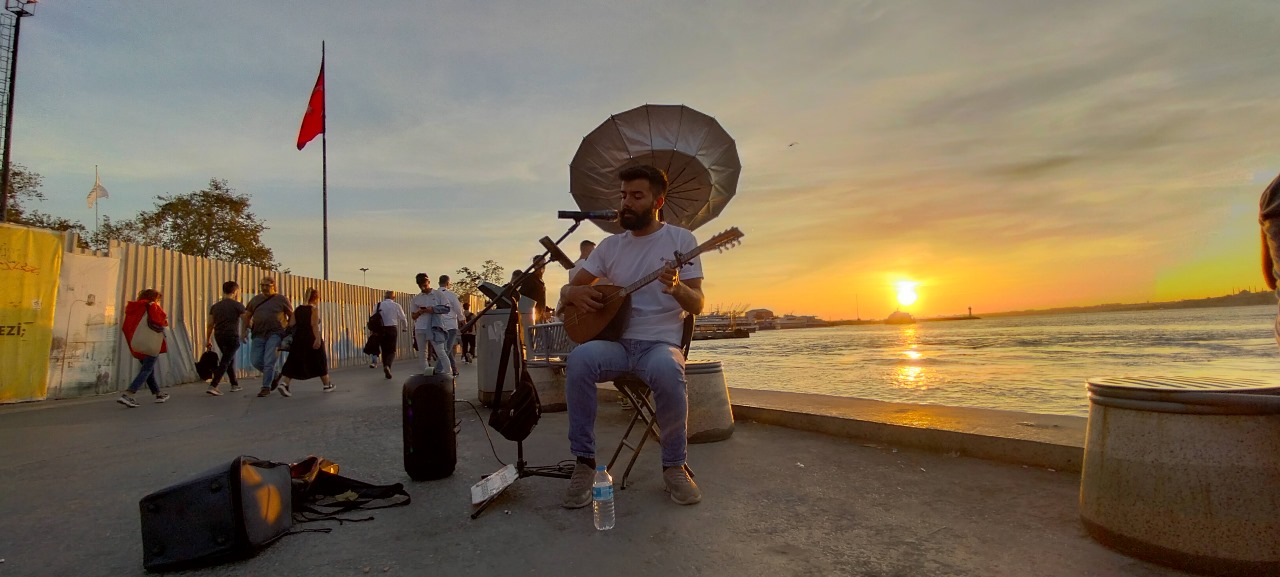 Kita bisa menikmati bukan saja indahnya matahari terbenam, tetapi juga udara yang sejuk dan riangnya burung-burung berterbangan di sana. Juga suasana ramai pengunjung ke tempat ini juga menikmati akan keindahan dermaga Kadikoy.