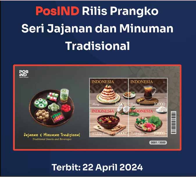 Dilansir dari Instagram @posindonesia.ig, prangko edisi “Jajanan dan Minuman Tradisional” ini sudah bisa dibeli mulai hari ini Senin (22/4/2024).