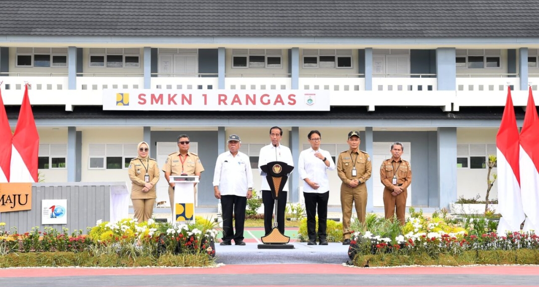 “Alhamdulillah berkat kerja keras kita semuanya hari ini akan kita resmikan 147 bangunan yang telah direhabilitasi dan direkonstruksi di Sulawesi Barat pascabencana yang lalu, bencana gempa,” ungkap Presiden Jokowi dalam sambutannya saat meresmikan serangkaian proyek rehabilitasi dan rekonstruksi, salah satunya di SMKN 1 Rangas.