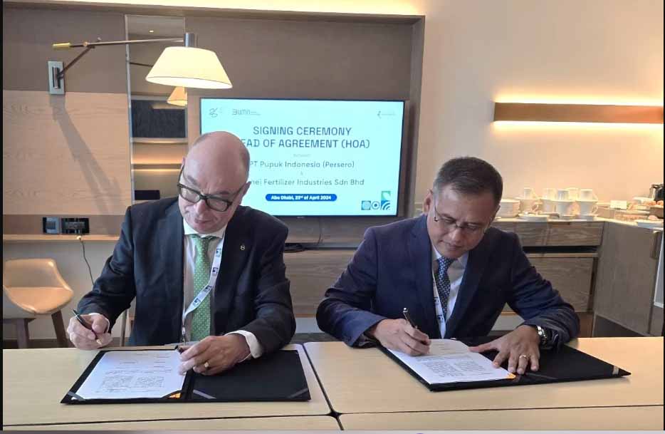 (Vibizmedia – Abu Dhabi) PT Pupuk Indonesia (Persero) berkomitmen untuk menjaga ketahanan pangan nasional dan regional ASEAN. Karena itu Pupuk Indonesia melangkah melakukan pengembangan urea dan amonia bersama Brunei Fertilizer Industries Sdn Bhd (BFI), BUMN dari negara jiran, Brunei Darussalam.