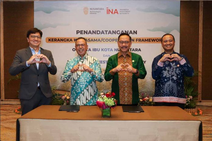 Kegiatan penandatanganan dihadiri oleh Deputi Bidang Pendanaan dan Investasi Otorita IKN, Agung Wicaksono, dan Anggota Dewan Direktur Indonesia Investment Authority, Arief Budiman.