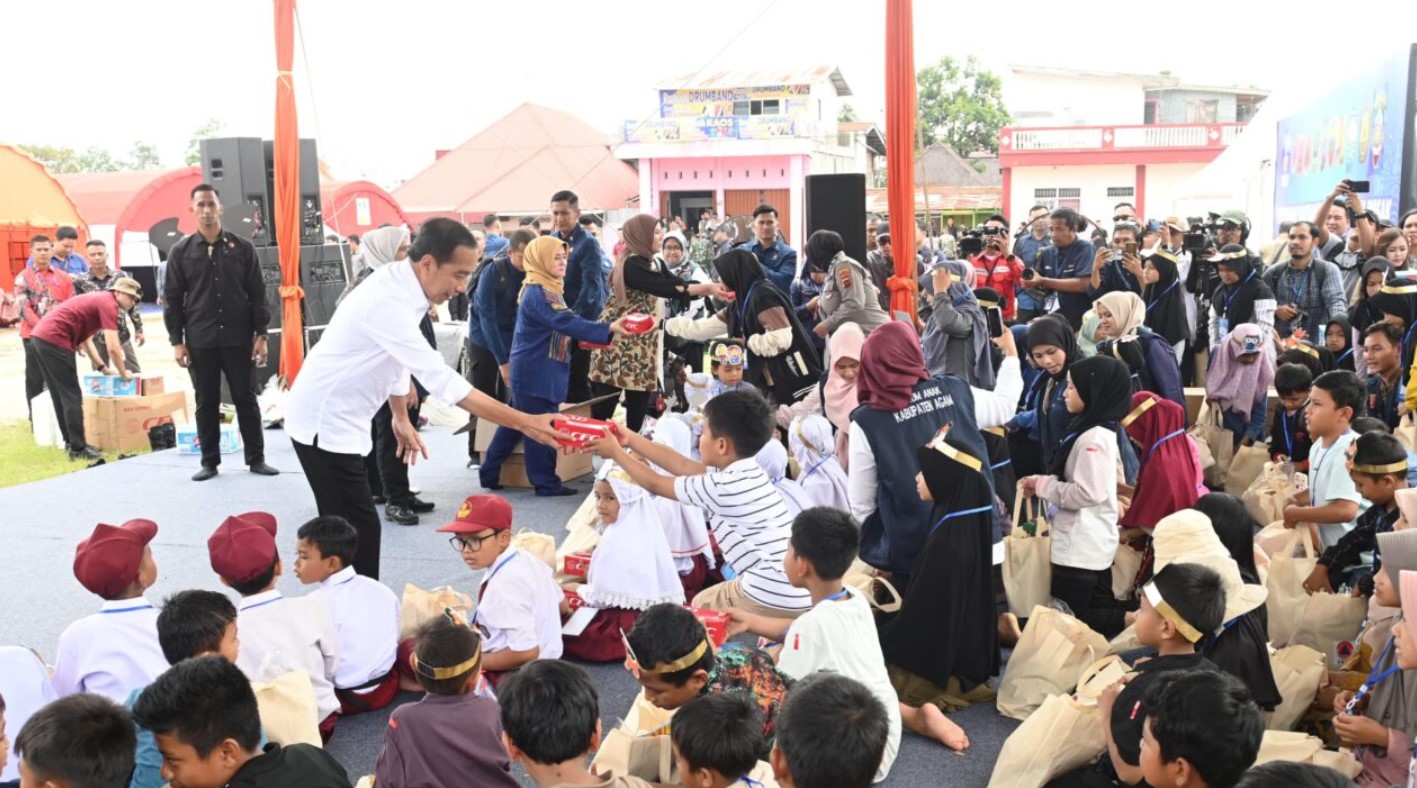 Dalam kunjungan kerja tersebut, mengawalinya Presiden Jokowi menyapa anak-anak di tenda pengungsian.