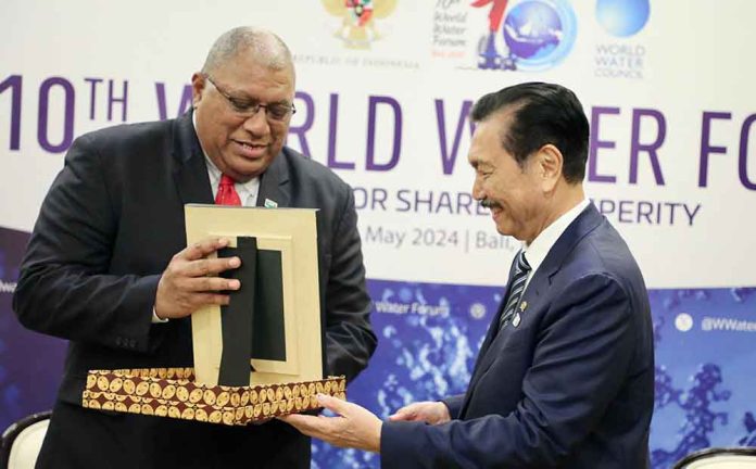 Saat Bilateral Meeting dengan Presiden Fiji Ratu Williame Maivalili Katonivere di sela-sela pertemuan World Water Forum ke-10, Uluwatu BNDCC, Nusa Dua, Selasa (21/5/2024), Menko Luhut menyatakan, Indonesia siap memberikan dukungan, termasuk keahlian, teknologi, dan mekanisme innovative financing atau blended finance alliance untuk mendukung inisiatif konservasi terumbu karang yang dicanangkan Presiden Katonivere di Fiji.