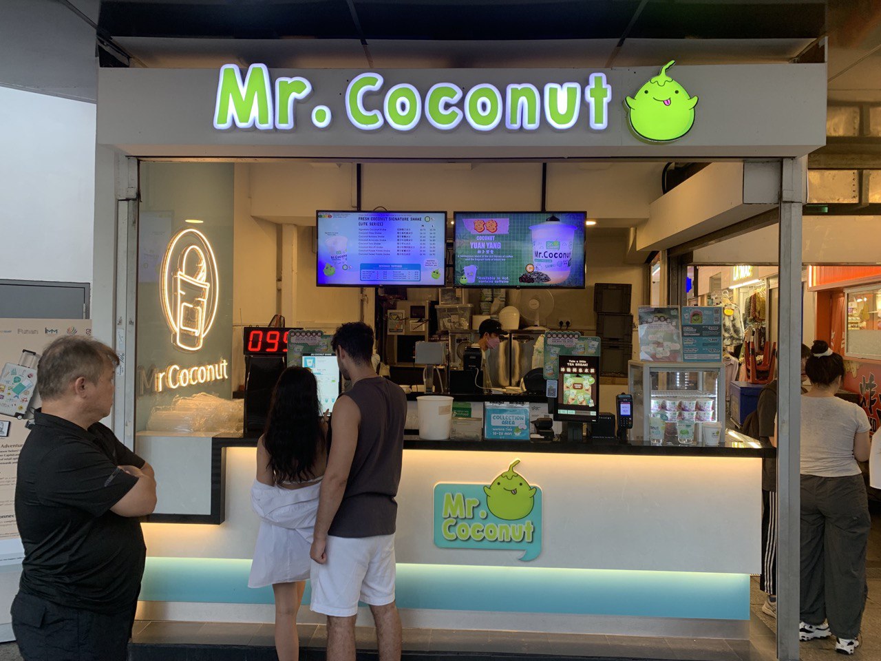 Di Singapura, gerai Mr. Coconut seperti gerai minuman pada umumnya. Namun cara memesannya menggunakan layar sentuh, sehingga pengunjung lebih mudah untuk memilih topping hingga tingkat kemanisan yang mereka inginkan.