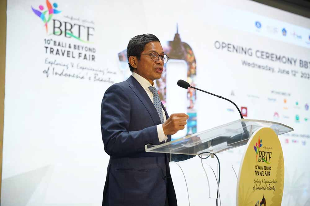 (Vibizmedia – Bali) Dalam pembukaan Bali and Beyond Travel Fair (BBTF) 2024 pada Rabu, (12/6) di Bali, Wamenlu RI, Pahala Mansury, menggarisbawahi pengembangan sektor pariwisata dan ekonomi kreatif untuk mencapai target pembangunan Sustainable Development Goals (SDGs).