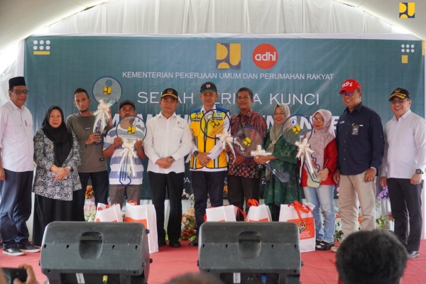 Prosesi serah terima kunci dipimpin oleh Menteri Koordinator Bidang Pembangunan Manusia dan Kebudayaan (Menko PMK) Muhadjir Effendy dan Direktur Jenderal (Dirjen) Perumahan Kementerian PUPR Iwan Suprijanto mewakili Menteri PUPR Basuki Hadimuljono di lokasi Huntap Tondo, Jumat (14/6/2024).