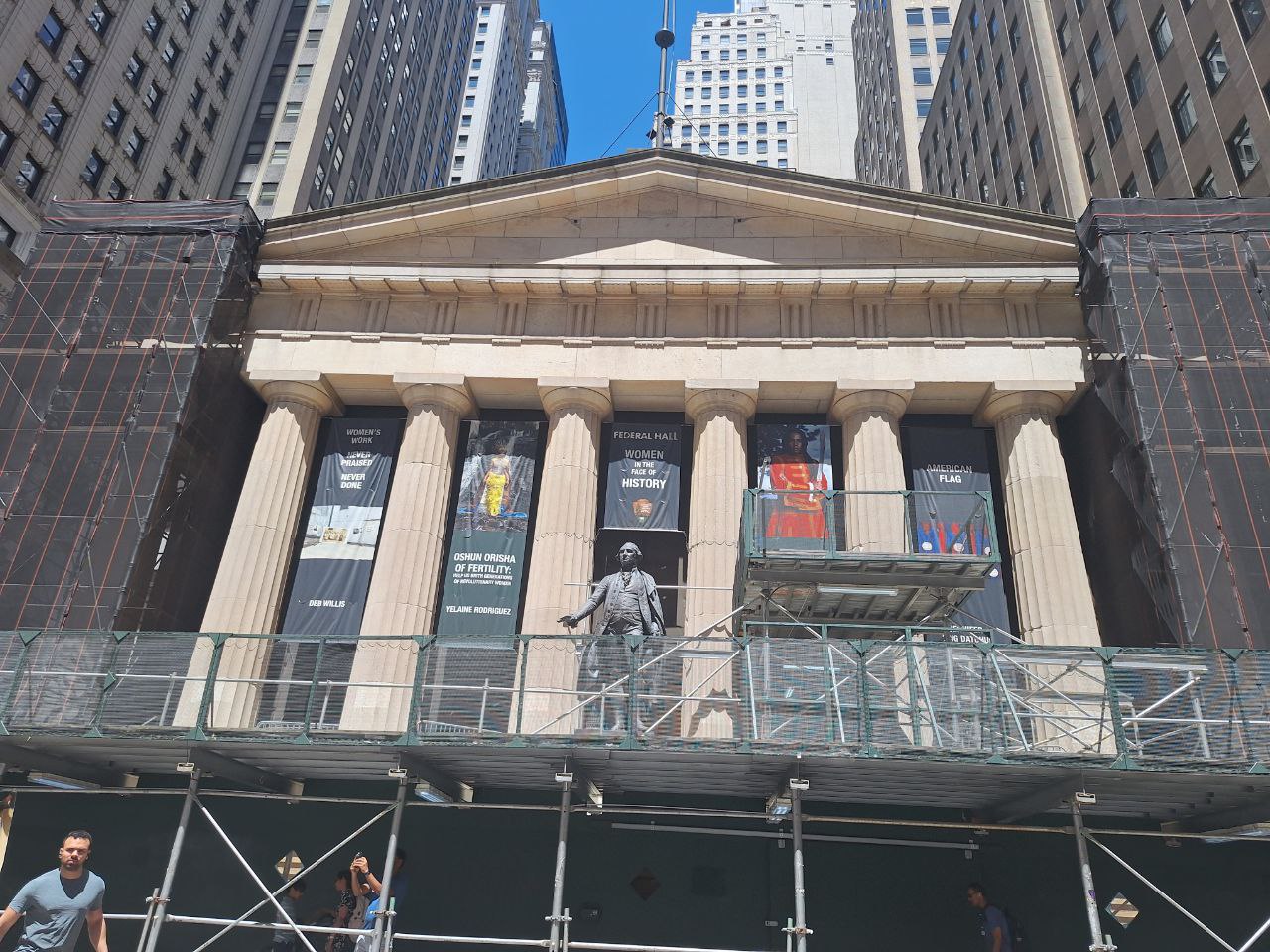 Washington mengambil sumpah jabatan di balkon gedung itu, kira-kira di mana patung itu sekarang berdiri.