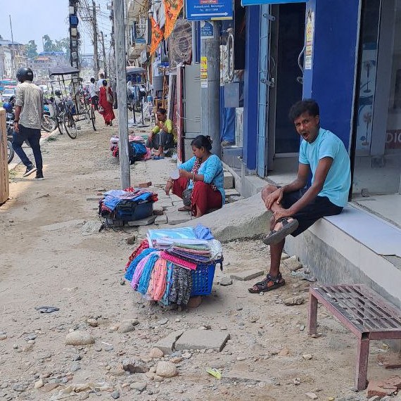 Salah satu pertokoan Chitwan terdapat beberapa pedagang berjualan di pinggir jalan. Hal yang menariknya adalah dagangan yang dijual bukanlah makanan, buah atau sayur-sayuran. Pedagangnya menjual pakaian seperti Kaos dan celana. Penjualnya bukan hanya satu tapi beberapa pedangan berjejer, hanya dengan satu keranjang ditumpuk barang dagangannya.