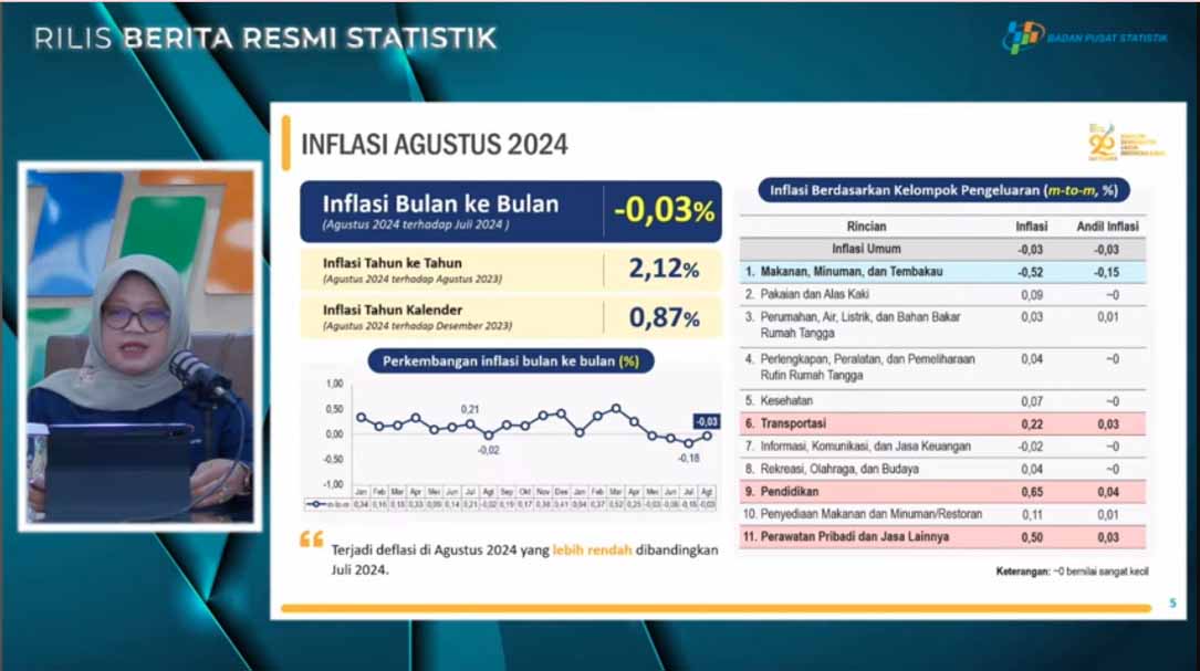 (Vibizmedia – Jakarta) Badan Pusat Statistik (BPS) melaporkan bahwa inflasi year on year (y-on-y) pada Agustus 2024 mencapai 2,12 persen dengan Indeks Harga Konsumen (IHK) berada di angka 106,06.
