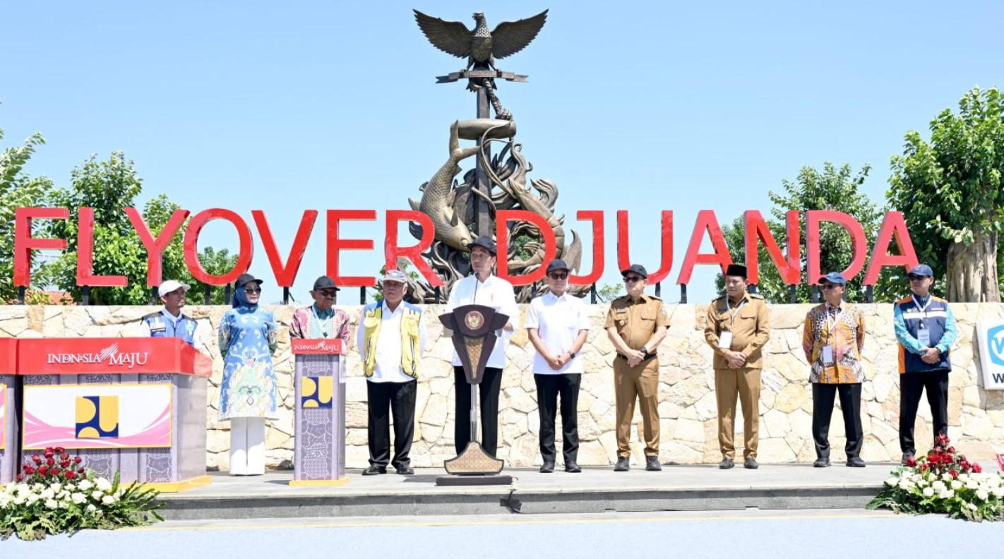 (Vibizmedia-Nasional) Presiden Joko Widodo meresmikan Flyover Djuanda, 9 Jembatan Calendar Hamilton, dan pelaksanaan Instruksi Presiden (Inpres) Jalan Daerah Wilayah Utara di Jawa Timur dalam acara yang berlangsung hari ini di Taman Flyover Djuanda, Kabupaten Sidoarjo, Jumat, 6 September 2024.