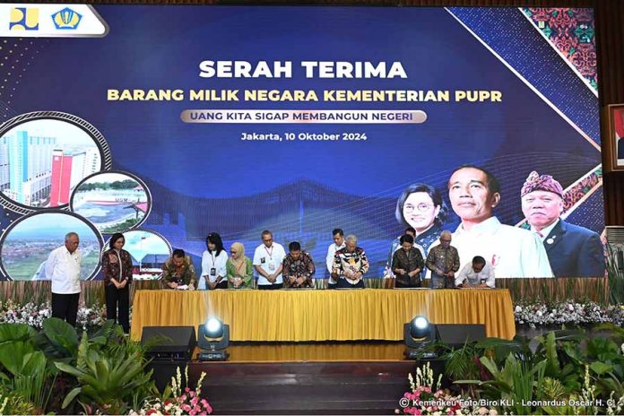 (Vibizmedia – Jatinegara) Menteri Keuangan Sri Mulyani Indrawati dan Menteri PUPR Basuki Hadimuljono pada Kamis (10/10) melakukan serah terima Barang Milik Negara (BMN) dengan total nilai Rp19,26 triliun. BMN tersebut terdiri dari hibah senilai Rp13,36 triliun dan aset yang dialihstatuskan penggunaannya sebesar Rp5,89 triliun.