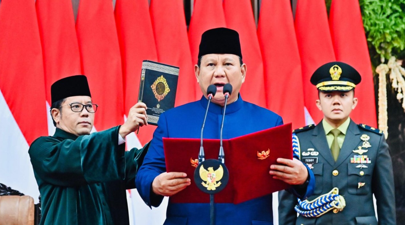 Presiden Prabowo Subianto saat melakukan Pengucapan Sumpah sebagai Presiden Republik Indonesia di Gedung Nusantara MPR/DPR/DPD, Jakarta, pada Minggu, 20 Oktober 2024. FOTO: BIRO PERS SETPRES