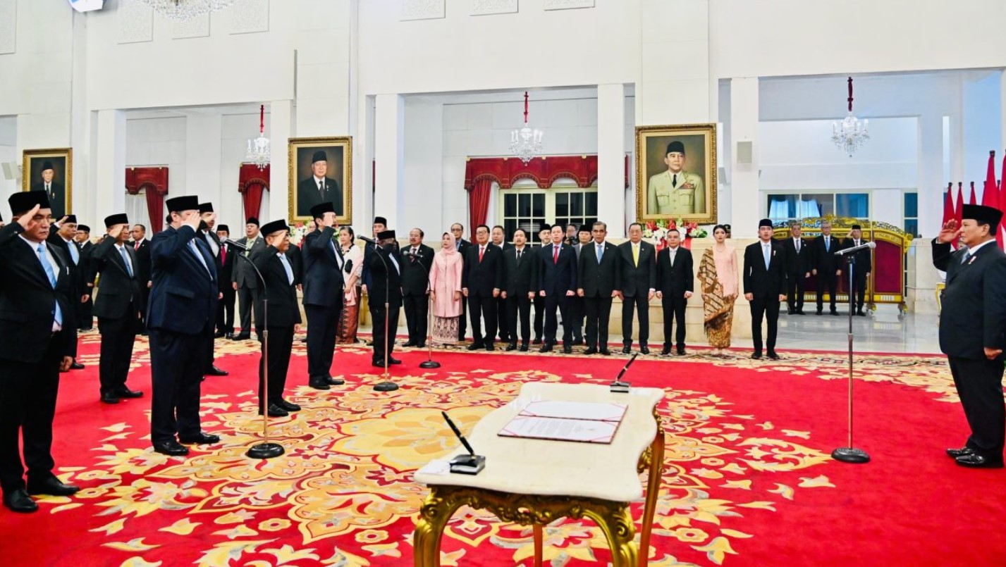 Presiden Prabowo Subianto melantik para menteri Kabinet Merah Putih di Istana Negara, Jakarta, pada Senin, 21 Oktober 2024. FOTO: BIRO PERS SETPRES