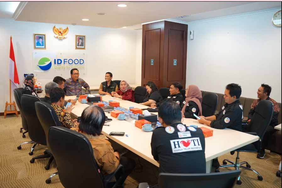 Direktur Utama ID FOOD Sis Apik Wijayanto menerima Audiensi Koordinator dan Pengurus Rumah Kebersamaan Peternak Layer Mandiri Blitar Kediri Tulungagung Malang Trenggalek (BKT NT) Eti Marlina. (Foto: ID FOOD)