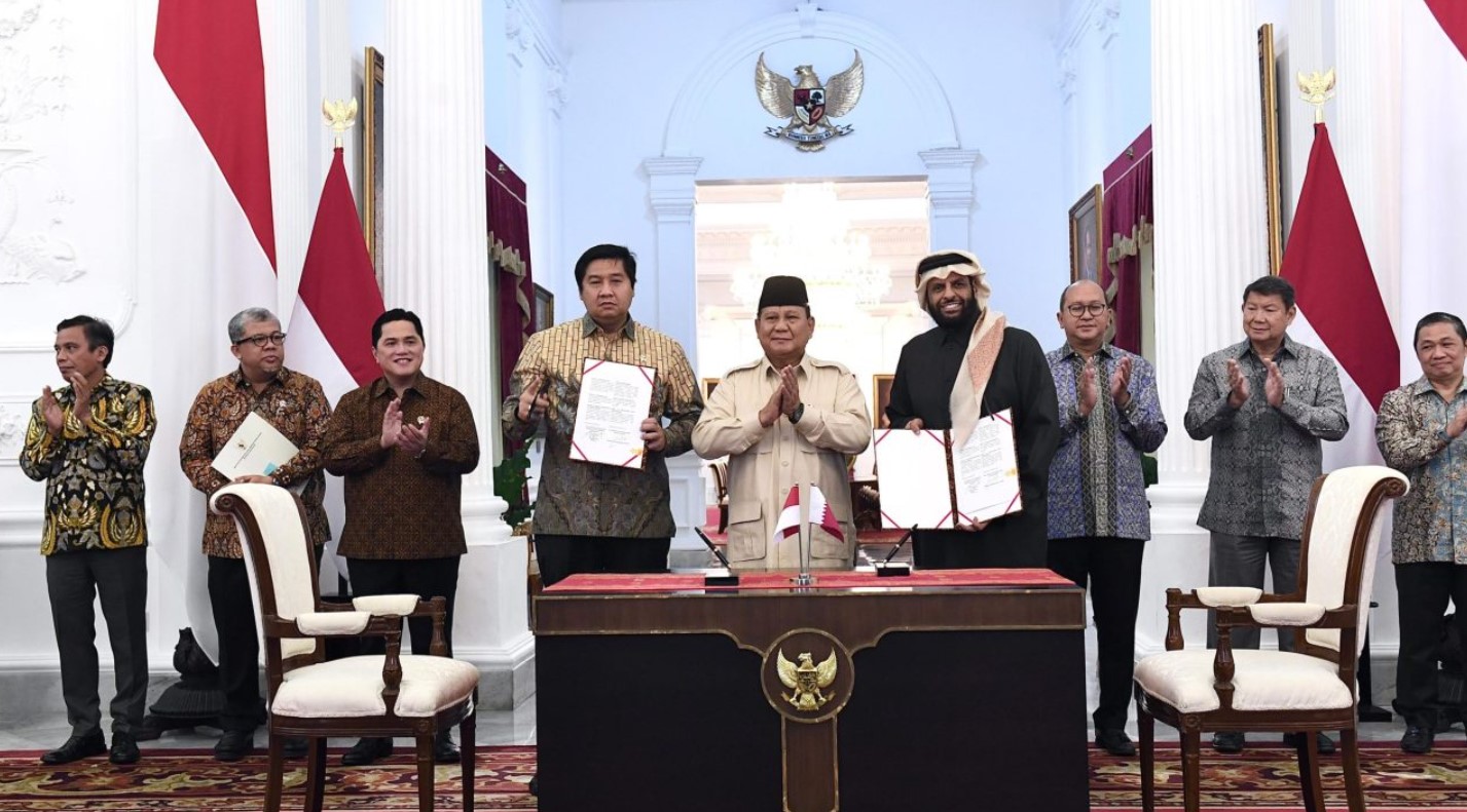 (Vibizmedia-Nasional) Presiden Prabowo Subianto menyaksikan penandatanganan nota kesepahaman atau memorandum of understanding (MoU) Pengembangan Proyek Hunian 1 Juta Unit antara Menteri Perumahan dan Kawasan Permukiman (PKP) Maruarar Sirait dengan Investor Perumahan (SHK) Kerajaan Qatar Yang Mulia Sheikh Abdulaziz bin Abdulrahman Al Thani di Istana Merdeka, Jakarta, pada Rabu, 8 Januari 2025.