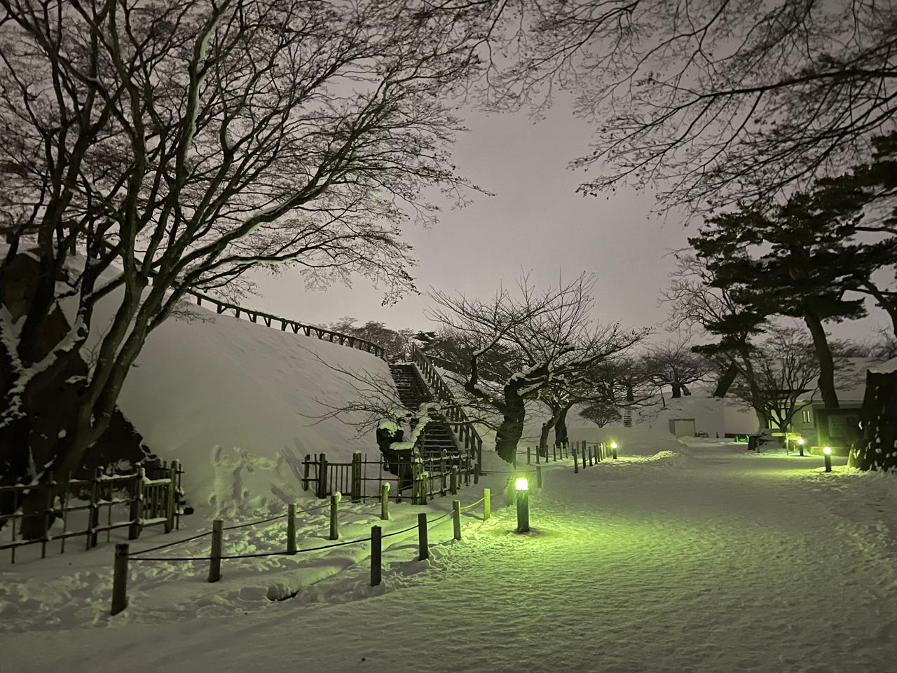 Selain itu, musim dingin di Hakodate juga terkenal dengan cuaca yang dingin dan berangin, namun masih tetap menarik untuk dikunjungi, terutama bagi mereka yang menyukai pemandangan musim dingin yang khas. Banyak pengunjung yang menikmati berjalan-jalan di sekitar Goryokaku Park, meskipun jalan-jalan di sekitar benteng bisa licin karena salju.