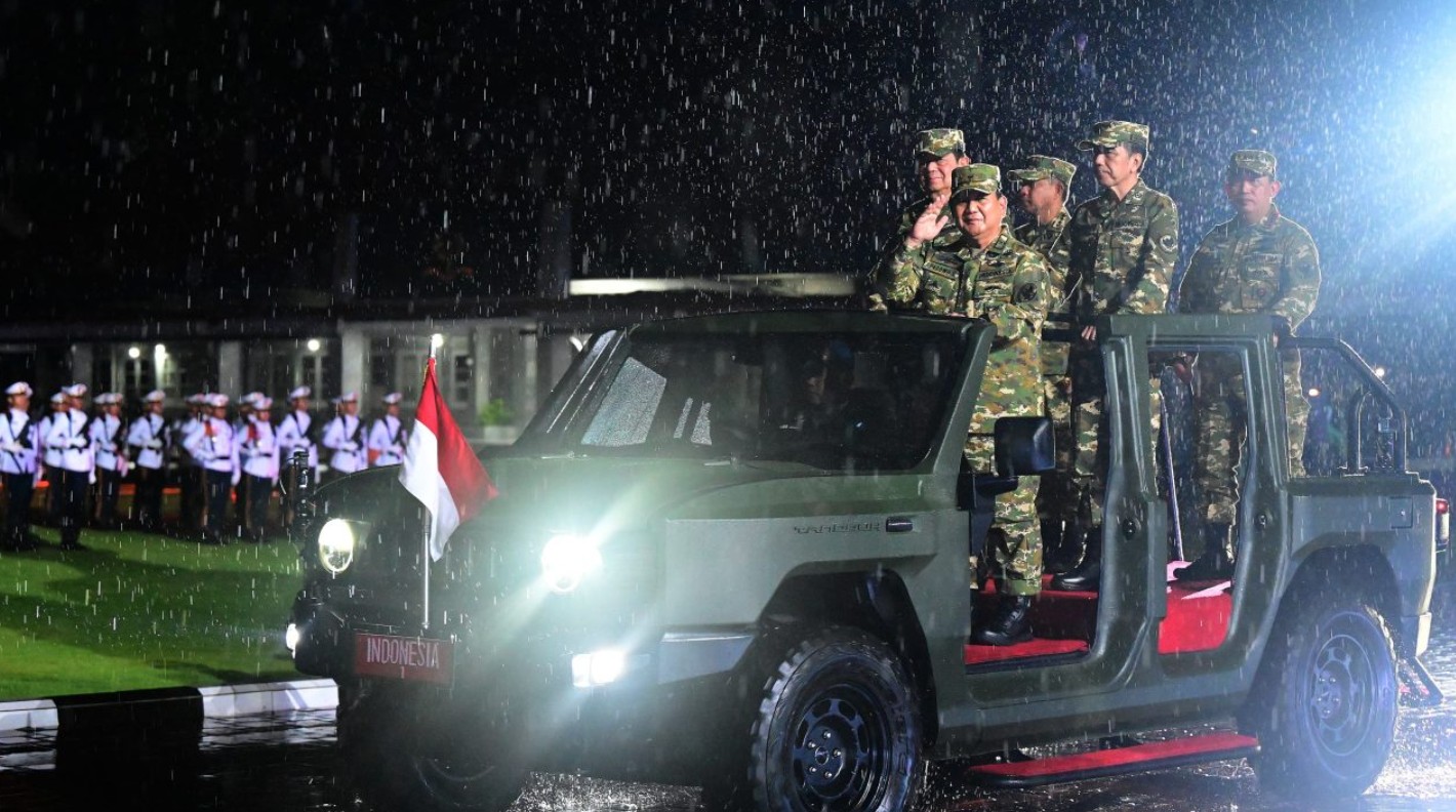 Dalam momen pemeriksaan pasukan yang sarat makna, Presiden Prabowo menaiki kendaraan taktis Maung bersama Presiden ke-6 RI Susilo Bambang Yudhoyono (SBY) dan Presidven ke-7 RI Joko Widodo (Jokowi). Tampak pula Panglima TNI Jenderal Agus Subiyanto dan Kapolri Jenderal Listyo Sigit Prabowo turut serta dalam kendaraan tersebut. Kebersamaan para pemimpin dalam satu kendaraan ini menjadi simbol kuat kesinambungan kepemimpinan nasional dan semangat persatuan.