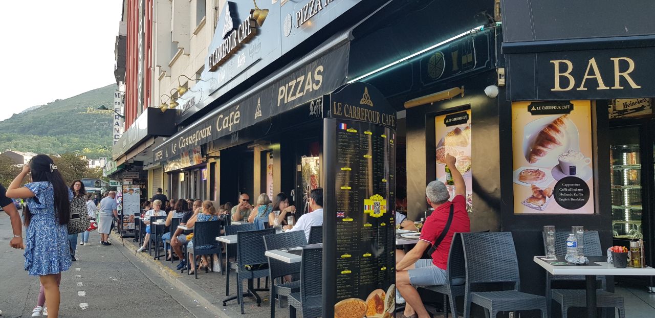 Banyak restoran dan kafe di kota menawarkan tempat duduk di luar, memungkinkan pengunjung untuk menikmati makanan sambil menikmati pemandangan pegunungan dan sungai.