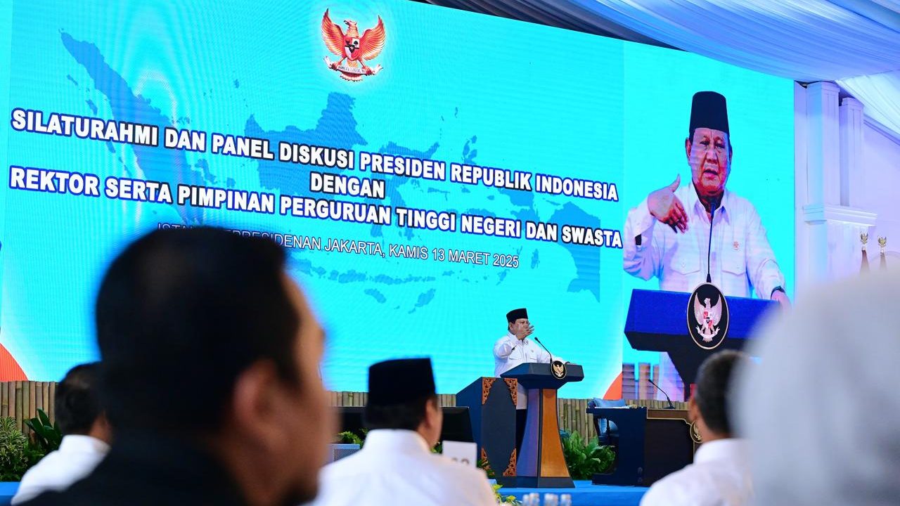 Presiden Prabowo Subianto menggelar acara silaturahmi dan panel diskusi dengan rektor serta pimpinan perguruan tinggi negeri dan swasta di Istana Kepresidenan Jakarta, pada Kamis, 13 Maret 2025. FOTO: BIRO PERS SETPRES