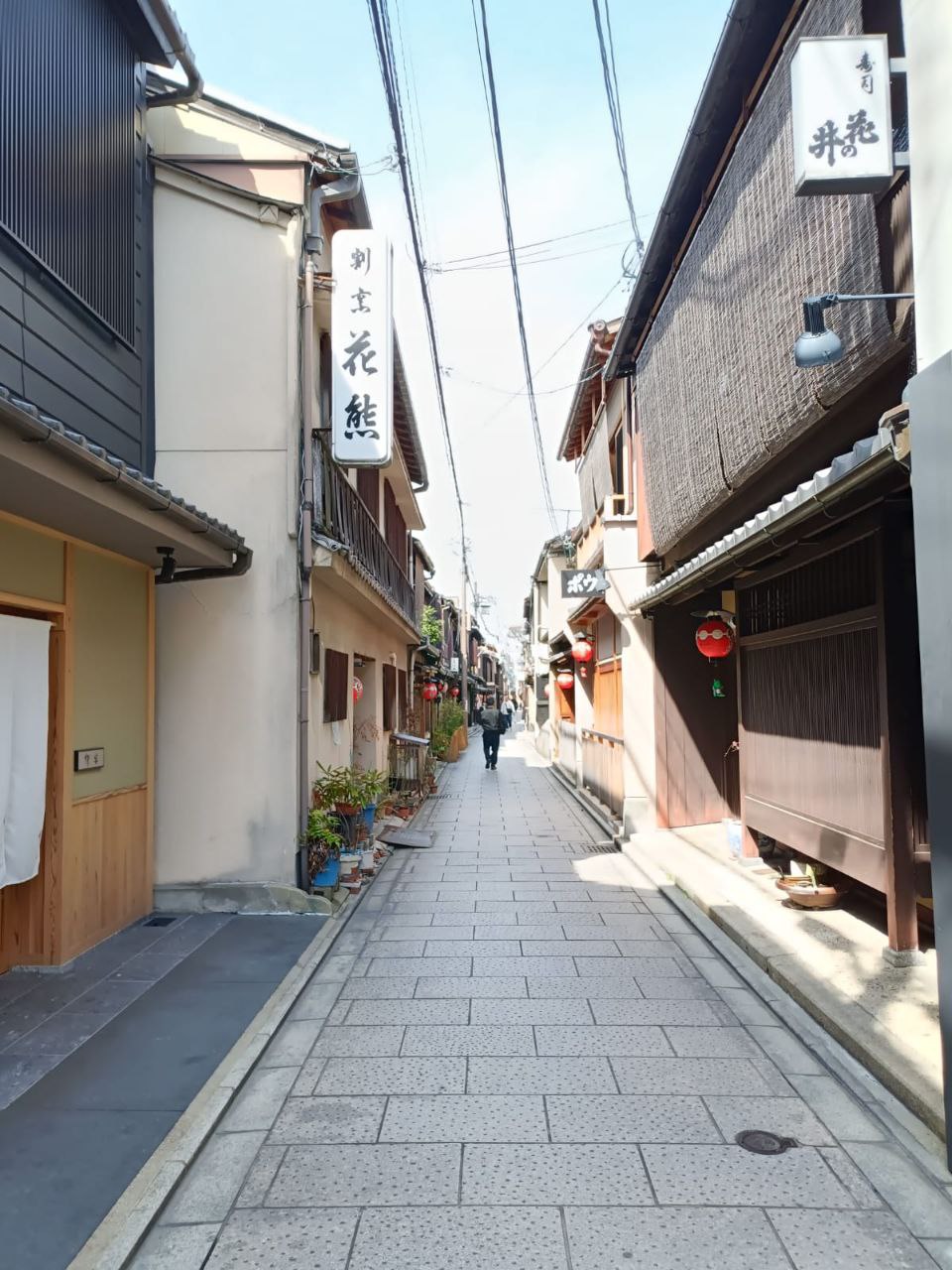 Suasana yang seakan membawa pengunjung kembali ke masa lalu. Di sepanjang jalan utama Gion, Hanami-koji, wisatawan dapat menemukan berbagai restoran, teh rumah, dan toko-toko kerajinan yang mengingatkan pada budaya tradisional Jepang