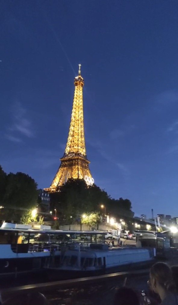 Begitu kapal mulai bergerak perlahan di atas air tenang Sungai Seine, cahaya kota mulai memperlihatkan pesonanya. Menara Eiffel yang menjulang tinggi memancarkan kilauan emas, menciptakan latar sempurna untuk foto malam yang indah.