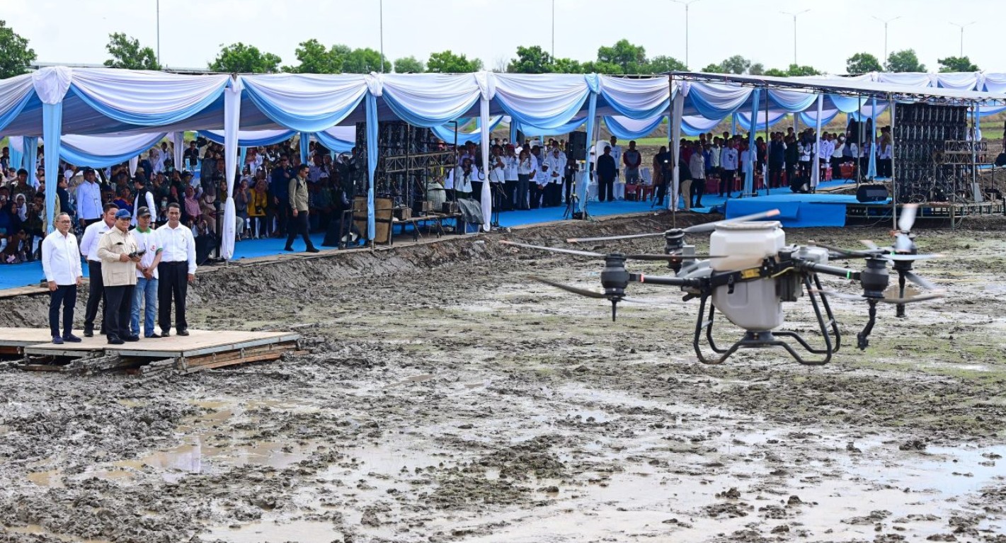 Di area tersebut, Presiden Prabowo secara langsung menjajal penebaran benih padi dengan menggunakan teknologi pertanian yakni drone DJI Agras T40. Menurut Presiden, penebaran benih dengan menggunakan teknologi tersebut dapat menjangkau 25 hektare lahan dalam waktu sehari.