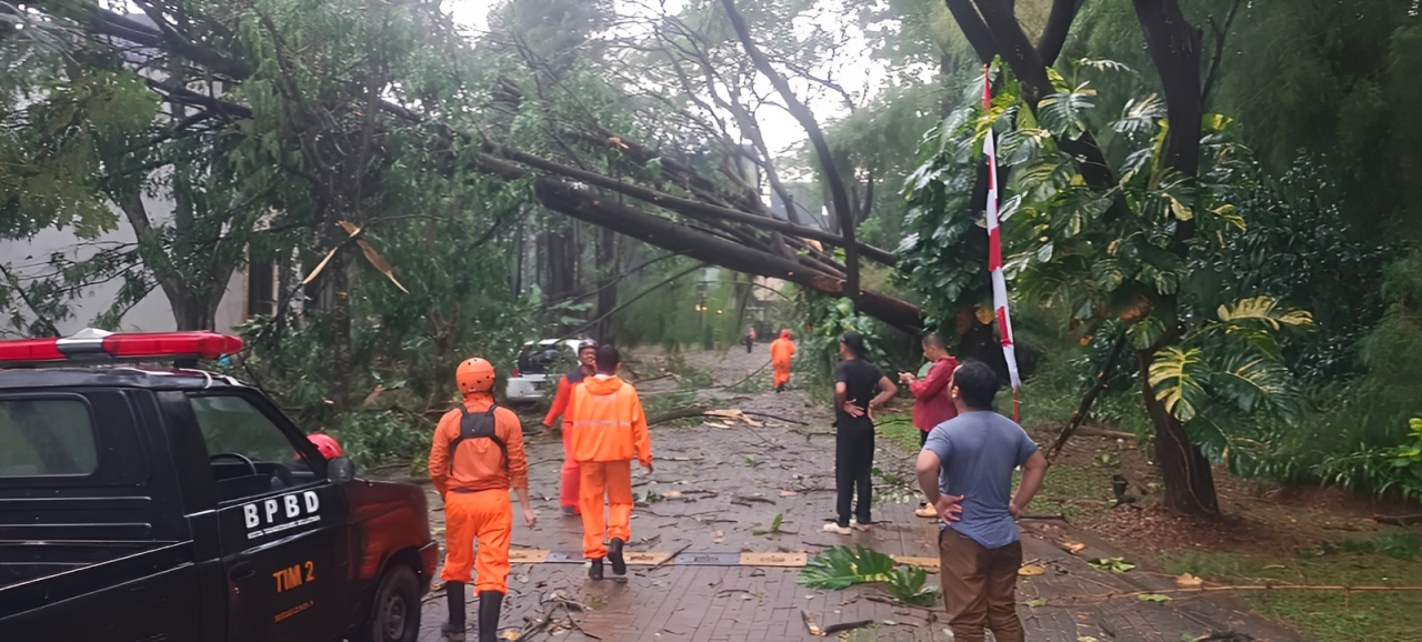 Pohon tumbang pasca hujan di Kecamatan Pondok Aren, Kota Tangerang Selatan, Banten, pada Senin, 4 Agustus 2025. FOTO: BNPB