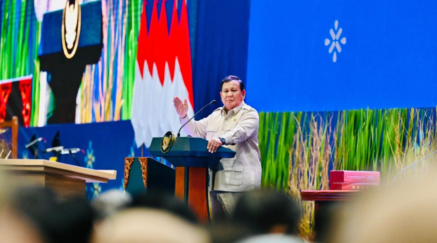 Presiden Prabowo Subianto menyampaikan pidato utama (keynote speech) dalam Konvensi Sains, Teknologi, dan Industri Indonesia (KSTI) Tahun 2025 di Sasana Budaya Ganesha (Sabuga), Institut Teknologi Bandung (ITB), Provinsi Jawa Barat, pada Kamis, 7 Agustus 2025. FOTO: BIRO PERS SETPRES