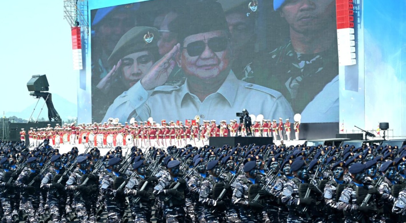 Parade ditutup dengan pertunjukan drone dan atraksi udara yang memukau. Sepanjang jalannya defile, Presiden Prabowo berdiri tegap di podium, memberikan penghormatan kepada setiap barisan yang melintas. Sorot matanya mengikuti setiap langkah pasukan, menggambarkan rasa bangga atas dedikasi mereka menjaga kedaulatan negara. Tepuk tangan meriah dari hadirin turut mengiringi penampilan para prajurit yang tampil penuh percaya diri.