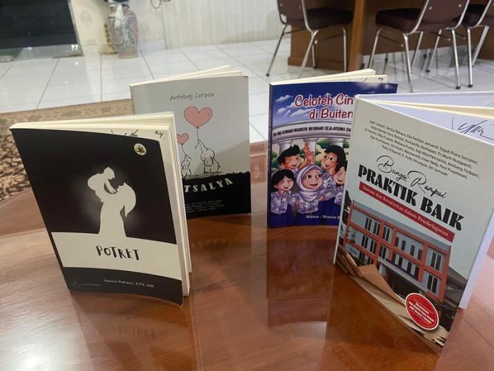 Buku-buku Karya Murid dan Guru SMPN 1 Bogor hasil dari budaya literasi sebagai bagian dari pembiasaan belajar yang menumbuhkan kreativitas dan karakter siswa (Foto: Infopublik)
