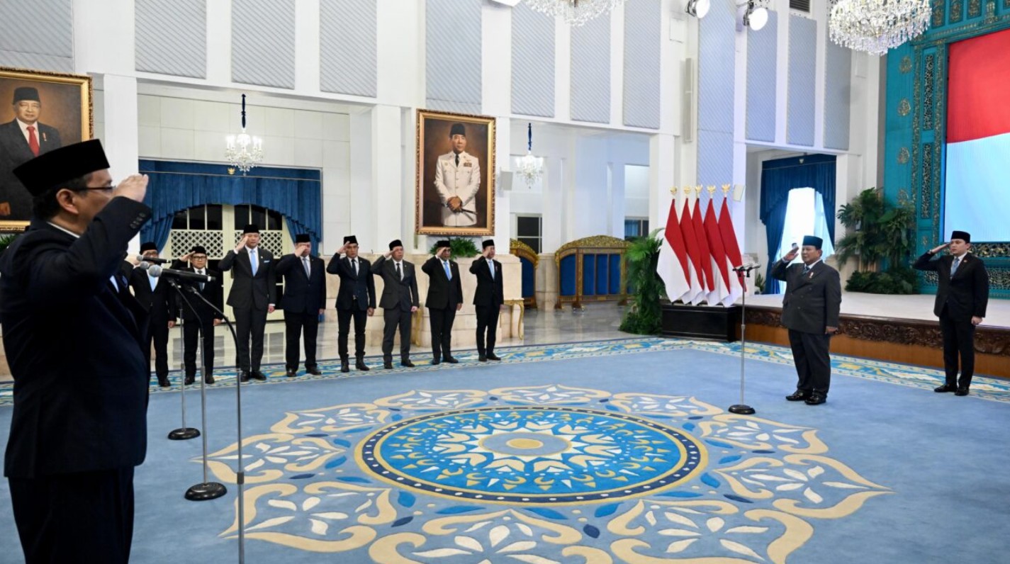 Dalam prosesi tersebut, Presiden Prabowo memimpin pengucapan sumpah jabatan yang diikuti oleh para menteri dan wakil menteri.