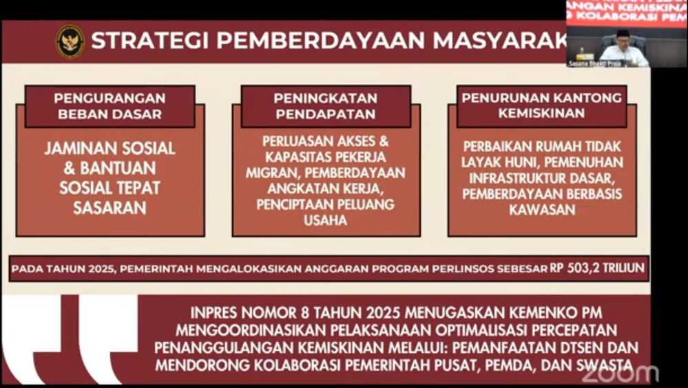 Ia menegaskan, setiap daerah memiliki peran penting dalam mengimplementasikan strategi tersebut. Agar program berjalan tepat sasaran, pemerintah menekankan penggunaan Data Tunggal Sosial Ekonomi Nasional (DTSEN) sebagai basis perencanaan dan pelaksanaan kebijakan.