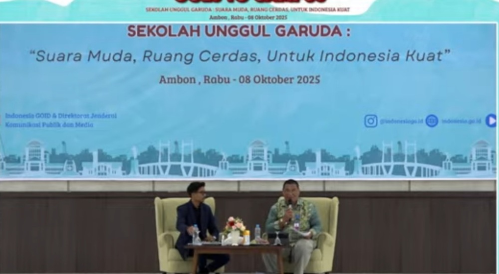 Dekan Fakultas Keguruan dan Ilmu Pendidikan (FKIP) Universitas Pattimura, Prof. Izaak H. Wenno (Batik Kanan), saat menjadi narasumber pada kegiatan Indonesia GOiD Goes To Campus bertema Sekolah Unggul Garuda: Suara Muda, Ruang Cerdas, untuk Indonesia Kuat di Ambon, Rabu (8/10/2025). (Foto: InfoPublik)