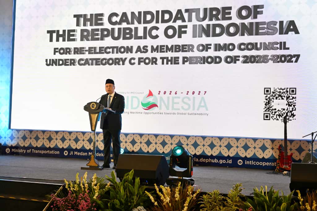 Hal tersebut disampaikan Menhub Dudy dalam Resepsi Diplomatik Pencalonan Indonesia sebagai Anggota Dewan International Maritime Organization (IMO) Kategori C Periode 2026–2027, yang digelar di Jakarta, Jumat (7/11/2025).