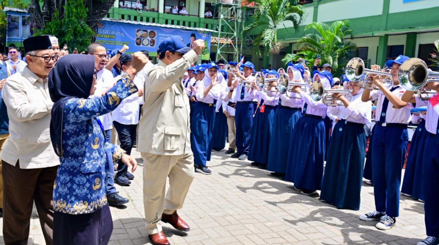 (Vibizmedia-Nasional) Kunjungan kerja Presiden Prabowo Subianto ke SMPN 4 Kota Bekasi pada Senin pagi berlangsung hangat dan penuh antusiasme. Sejak rombongan Presiden memasuki kawasan sekolah, ratusan pelajar dan warga telah menyambut dengan semangat. Alunan drumben, tepuk tangan meriah, serta senyum para pelajar mewarnai kedatangan Kepala Negara. Presiden pun membalas sambutan itu dengan ramah, menghampiri dan menyalami para pelajar satu per satu.