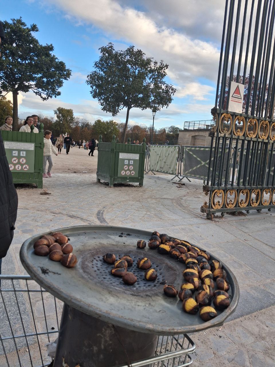 Di area hutan seperti Forêt de Fontainebleau atau Parc de Saint-Cloud para pedagang musiman menjual marrons chauds langsung dari gerobak kecil berwarna hitam atau tembaga, menghasilkan wangi panggangan yang tercium di antara pepohonan. Sensasinya sederhana, tapi sangat “Prancis”: menyusuri hutan sambil menggenggam kertas kerucut berisi kacang chestnut hangat.