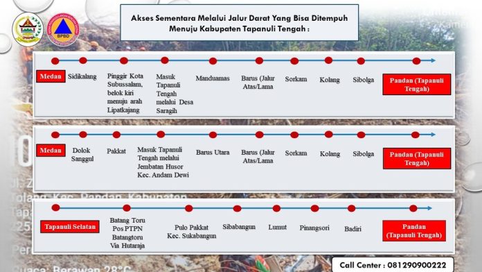 Kepala BPBD Tapteng, Rahman Husein Siregar, menyampaikan bahwa terdapat dua rute alternatif dari Kota Medan menuju Tapteng.