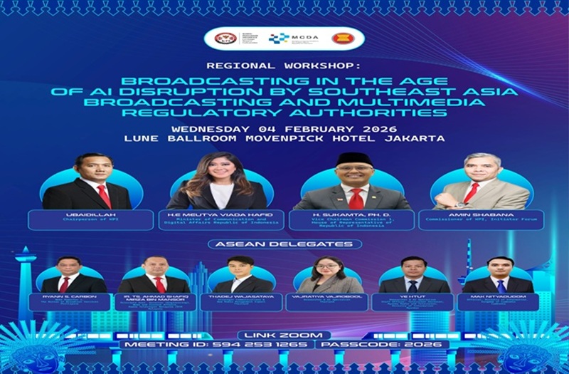 Workshop tersebut dijadwalkan berlangsung di Jakarta pada 4–5 Februari 2026 dan merupakan hasil kerja sama antara KPI, Sekretariat ASEAN, serta Pusat Kerja Sama Internasional Kementerian Komunikasi dan Digital.