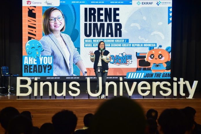 (Vibizmedia – Jakarta) Wakil Menteri Ekonomi Kreatif/Wakil Kepala Badan Ekonomi Kreatif (Ekraf) Irene Umar menghadiri Opening Ceremony Garena Game Jam 3 yang digelar di BINUS University, Jakarta, Minggu (8/2/2026). Kehadirannya menegaskan komitmen pemerintah dalam mendorong pertumbuhan talenta digital serta memperkuat ekosistem industri gim nasional.