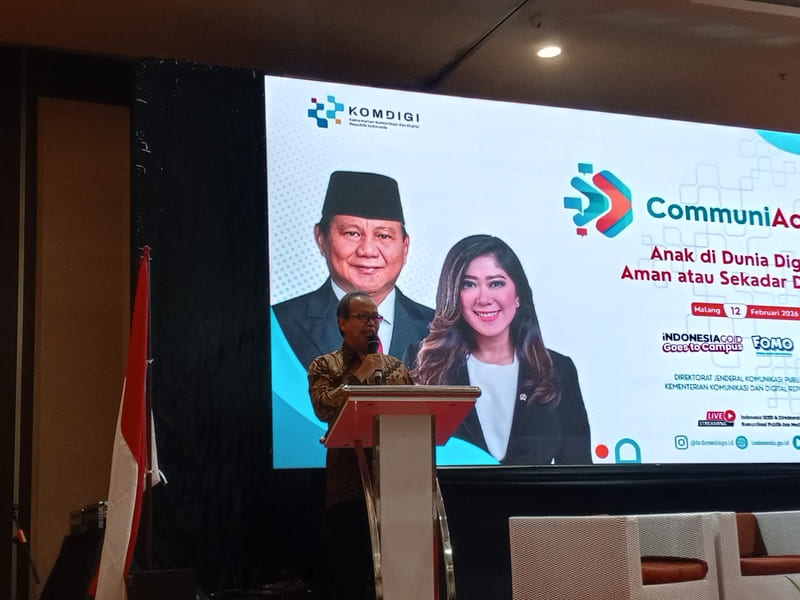 Pesan tersebut disampaikan Direktur Informasi Publik Direktorat Jenderal Komunikasi Publik dan Media (Ditjen KPM) Kemkomdigi, Nursodik Gunarjo, saat membuka kegiatan CommuniAction Malang bertema “Anak di Dunia Digital: Aman atau Sekadar Diawasi?” di Kota Malang, Kamis (12/2/2026). Ia hadir mewakili Direktur Jenderal KPM Kemkomdigi, Fifi Aleyda Yahya.