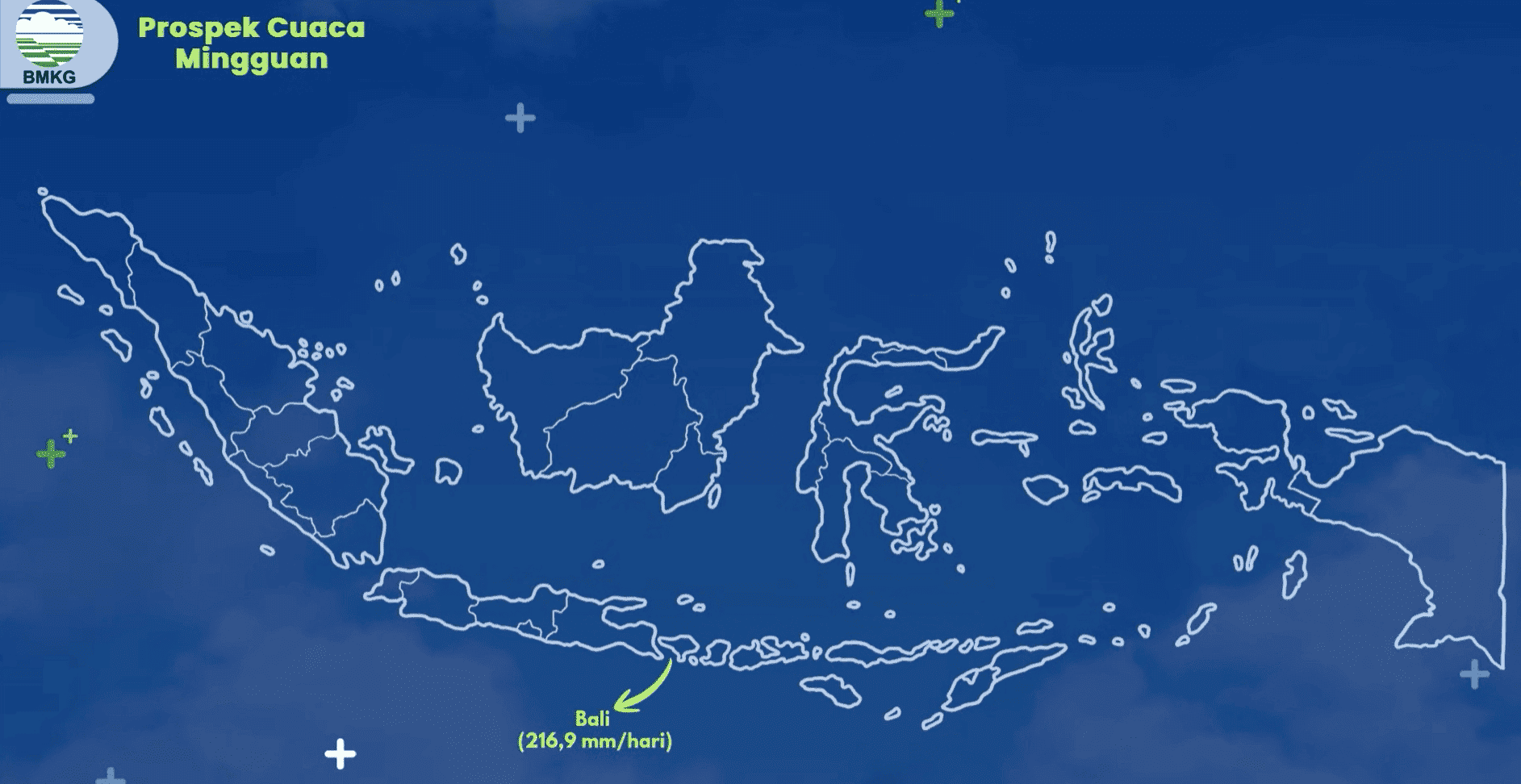 Berdasarkan evaluasi periode 23–26 Februari 2026, BMKG mencatat hujan dengan intensitas sangat lebat hingga ekstrem di beberapa wilayah, termasuk Bali dan Sulawesi Selatan. Di Provinsi Bali, curah hujan mencapai 216,9 mm per hari dan masuk kategori ekstrem, sedangkan di Sulawesi Selatan tercatat 146,5 mm per hari atau kategori sangat lebat. Intensitas tersebut berpotensi menimbulkan bencana hidrometeorologi seperti banjir, tanah longsor, dan angin kencang.