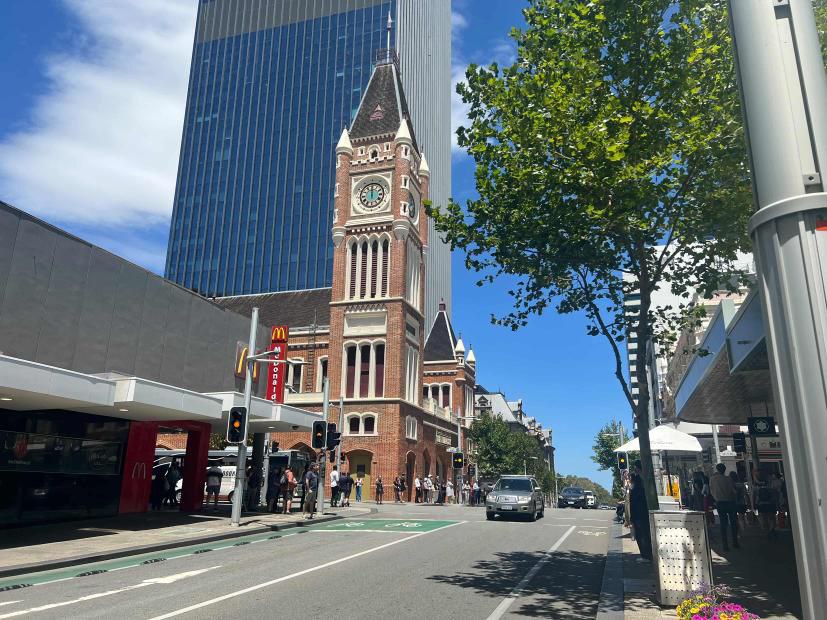 Tak jauh dari dermaga, berdiri megah The Bell Tower, salah satu landmark paling terkenal di Perth. Menara ini tidak hanya menjadi daya tarik visual, tetapi juga menyimpan lonceng-lonceng bersejarah dari Inggris yang telah berusia ratusan tahun. Kehadiran The Bell Tower semakin memperkaya nilai budaya dan historis kawasan Barrack Street.