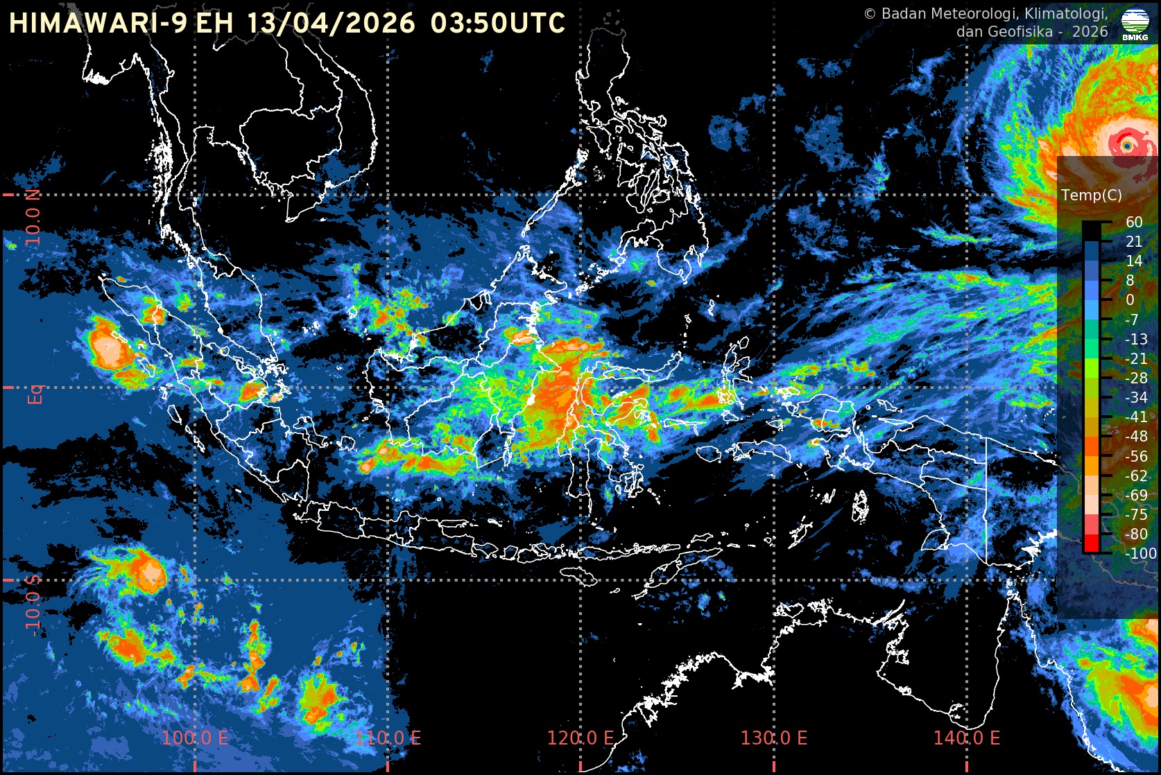 (Vibizmedia-Nasional) Badan Meteorologi Klimatologi dan Geofisika (BMKG) merilis prakiraan cuaca nasional untuk Senin, 13 April 2026, dengan peringatan potensi cuaca ekstrem di berbagai wilayah Indonesia.