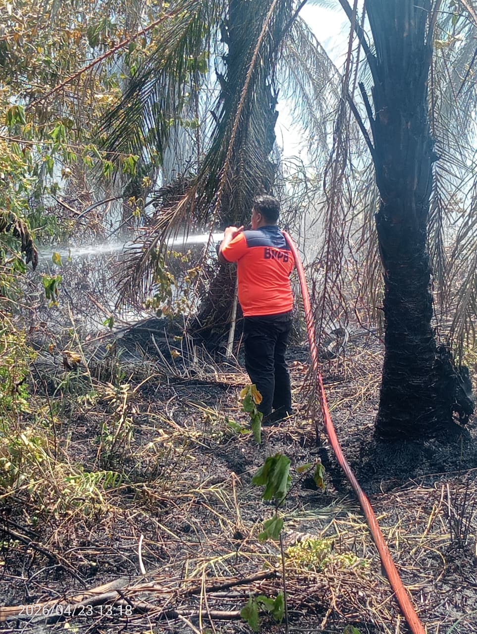 Di wilayah lain, kebakaran hutan dan lahan terjadi di Gampong Meudang Ara, Kecamatan Langsa Timur, Kota Langsa, Aceh, Kamis (23/4) pukul 12.00 WIB. Kebakaran diduga dipicu pembakaran sampah oleh warga yang kemudian merembet ke lahan gambut.