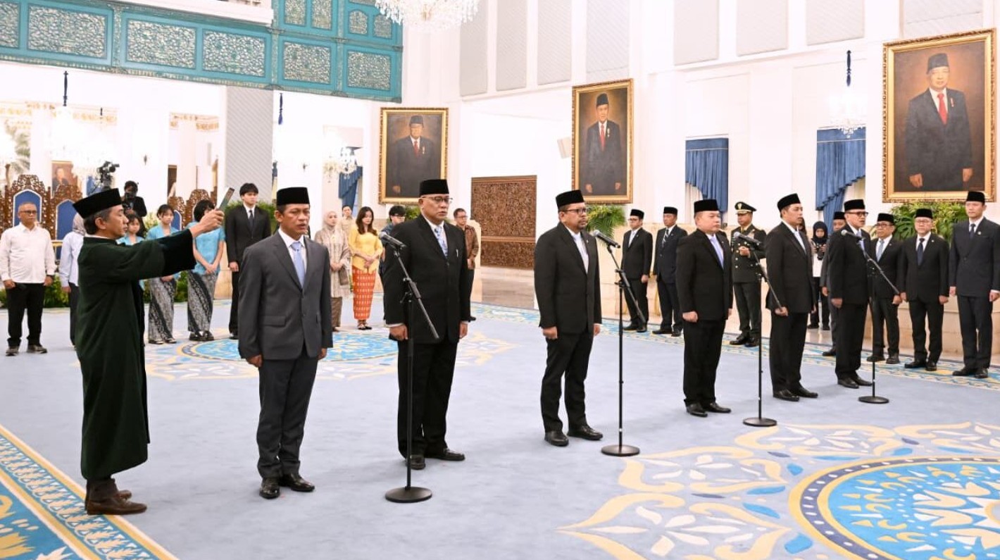 Dalam acara pelantikan, Presiden Prabowo memimpin langsung pengambilan sumpah jabatan para pejabat baru.