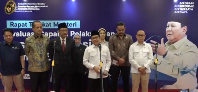 Menteri Koordinator Pemberdayaan Masyarakat, A.Muhaimin Iskandar setelah Rapat Tingkat Menteri (RTM) di Plaza BP Jamsostek, Kuningan, Jakarta, Senin (27/4/2026). (Foto: Kemenko PM))