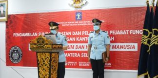 Kakanwil Kemenkumham Sumsel Lantik 5 Pejabat Fungsional