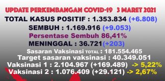 Breaking News COVID-19 di Indonesia 3 Maret 2021, Tambah 6.808,...