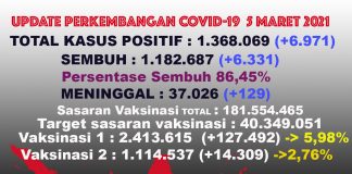 Breaking News COVID-19 di Indonesia 5 Maret 2021, Tambah 6.971,...