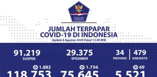 Terus Meningkat Kasus Sembuh COVID-19 di Indonesia 6 Agustus 2020: Prosentasenya...